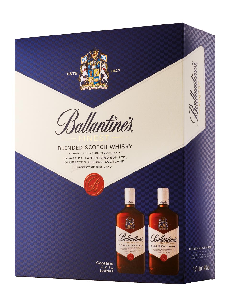 This easy-to-carry pack contains two 1L bottles of Ballantine’s Finest blended Scotch whisky.