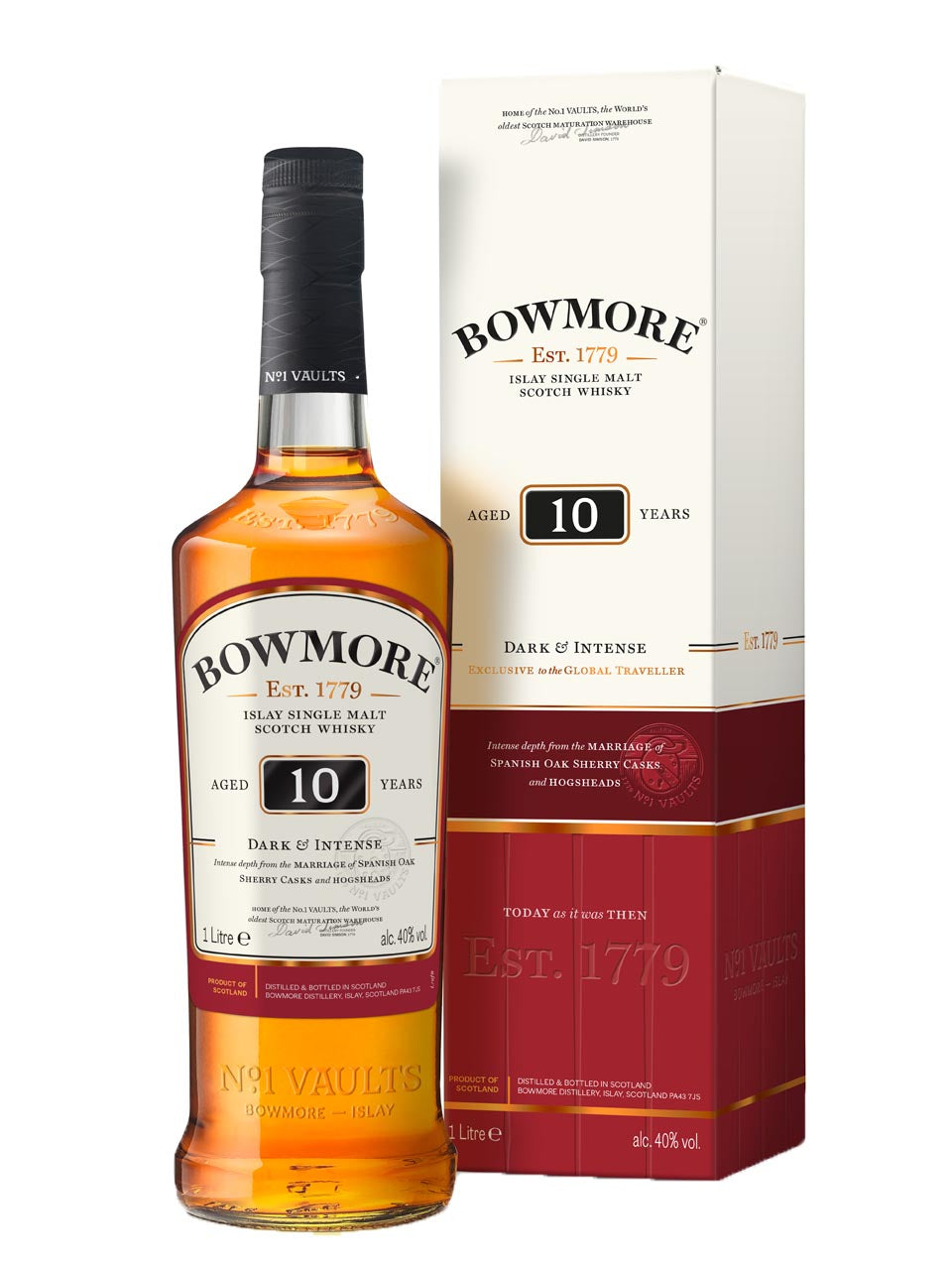 Dark & Intense. Bowmore’s 10 years old pushes the boundaries with bold flavour fusions. Spanish oak sherry casks develop spicy notes on our signature peat smoke in an intense marriage of fire and earth. Experience the layered spectrum of baked Seville orange, toasted maple, peat smoked walnuts and sherry.